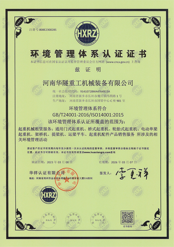 河南華隧重工機械裝備有限公司主要從事通用門式起重機、橋式起重機、電動單梁起重機,輪胎式起重機、架橋機、提梁機、遠梁平車、鋼絲繩電動萌蘆、卷揚機、起重配件制造、銷售:起重機械租賃、安裝和維修,起重設備園收,機械設備維修,鋼結構工程承包,橋梁工程及技術咨淘服務,銷售五金制品、機電設備:建設工程監理,建設工程設計,各類工程建設活動,建筑勞務分包,建筑物折除作業,施工作業,工程管理服務,土石方工程施工,裝如發運。  公司已通過IS0國際質量、環境、健康與安全三合一標準認證,特種設備制造許可證和特種設備安裝改造維修許可證。擁有完熟的質量管理體系。嚴格的管理制度,強大的生產能力和先進的檢測手段,在保證產品質量的同時,也具備了極強的市場競爭力。  公司堅持科技創新為理念,產品質量為核心,注重信譽,建立了減信可靠、快捷、思速。便利周到的售后服務網絡。  我們擁有的技術專家和技術服務隊伍為客戶提供充善的售前技術支持和全天候的售后服務體系,讓您無后顧之憂,享受一站式的超值服務。  “華隧重工,伴您成功“是華隧重工永遠的宗指,真被的希望與各界朋友攜手并進。共創輝準!